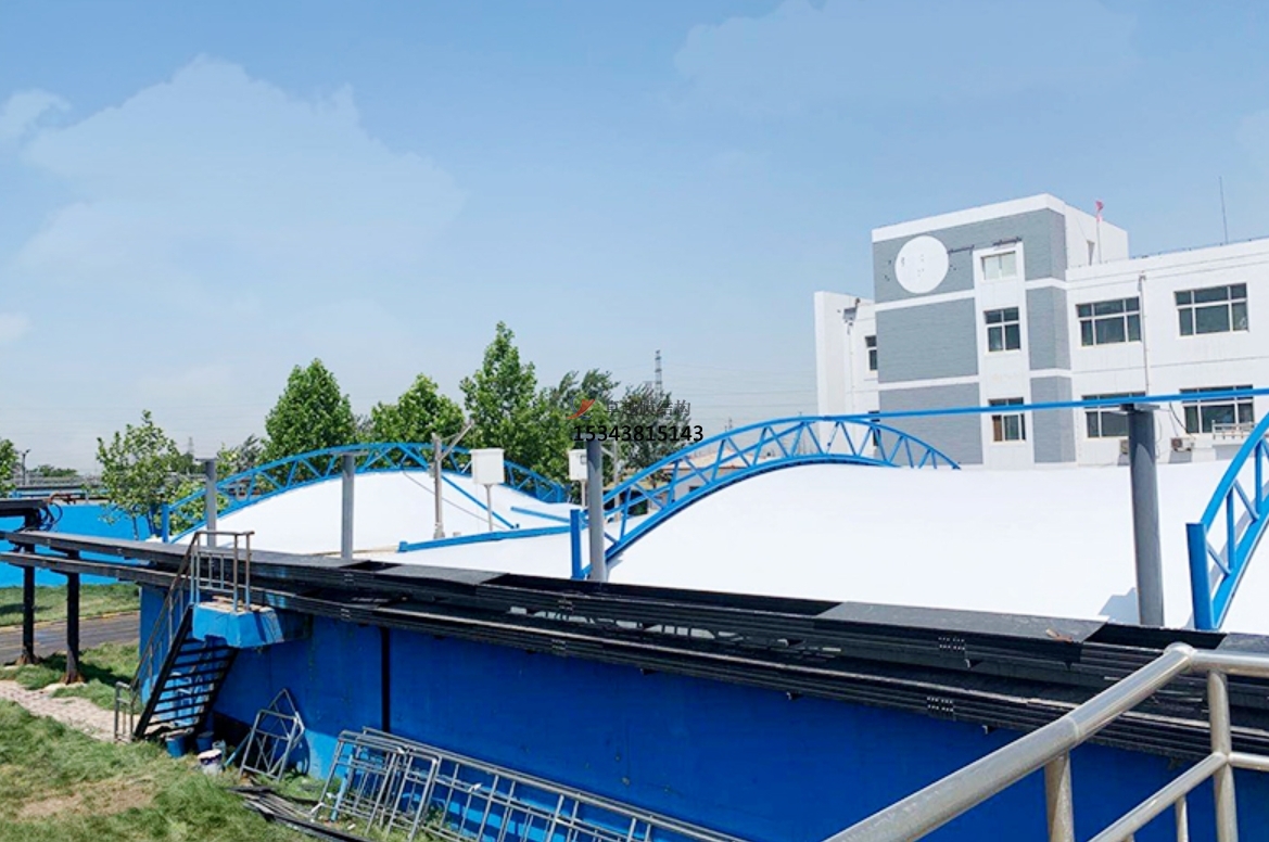 3、適用池體多樣:反吊膜以鋼結構為支撐,膜材料反吊覆蓋,可根據不同池體的跨度、形狀進(jìn)行定制。無(wú)論是圓形、方形