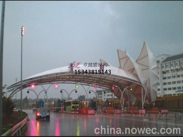 膜結構收費站是近年來(lái)在國內開(kāi)始流行的一種新式的收費站結構。它與以往的舊式收費站相比,結構更加輕盈,而且在使用中比較穩固。它的材料使用了高分子膜結構材料和支撐構件共同組成,并且能根據支撐構件的高低位置不同而呈現不同的形狀。因此在教育,商業(yè),體育館等公共場(chǎng)所都有很廣泛的應用 收費站在更初是作為一種能提供給車(chē)輛泊的地方,使車(chē)輛避免了直接面對風(fēng)吹雨打。用來(lái)保證自行車(chē),汽車(chē)等在收費站下不受損傷。