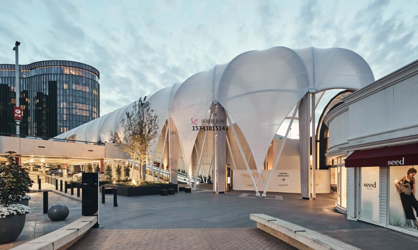 張拉膜結構遮陽(yáng)棚具有靈活多變的結構設計,可以根據商業(yè)街區的實(shí)際需求和地形特點(diǎn),進(jìn)行個(gè)性化定制。不僅可以為行人提供遮陽(yáng)避雨的服務(wù),還可以作為廣告宣傳、信息展示的平臺,實(shí)現商業(yè)價(jià)值的最大化。