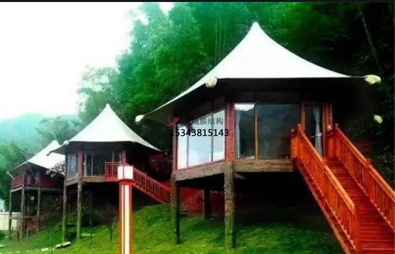 其搭建過(guò)程對周邊自然環(huán)境破壞少,可以更好地與融入景區環(huán)境,再配合特色打造的拉膜造型,可 成為在戶(hù)外帶來(lái)五星級野者體驗的美觀(guān)實(shí)用帳篷酒店!