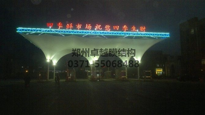 卓越案例——寧夏銀川四季海鮮市場(chǎng)大門(mén)膜結構雨棚
