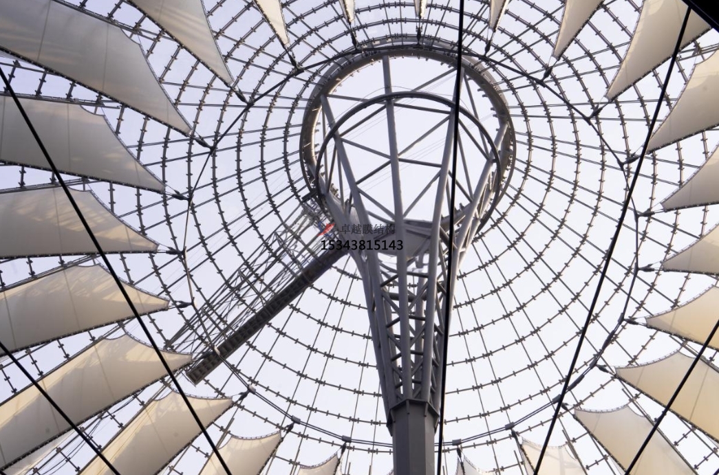 支撐體系則包括拉索、桅桿、拱等結構部件。拉索如同整個(gè)結構的 “筋骨”,通過(guò)合理布置,將膜材張拉至預定形狀,為膜材提供穩定的支撐力。桅桿和拱等作為主要的豎向或曲線(xiàn)支撐,與拉索協(xié)同工作,共同確定膜結構的空間形態(tài)。其原理基于力的平衡,利用膜材的張力和拉索的拉力相互作用,使整個(gè)結構處于穩定的受力狀態(tài),如同一張被精心張緊的巨型 “織物”,在風(fēng)中展現出獨特的力學(xué)美感。