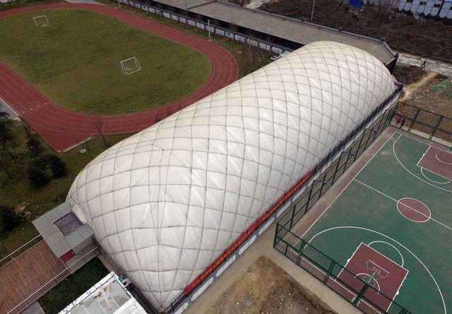 4. 普通的氣膜沒(méi)有鋼纜或者只有縱橫鋼纜的加固,抗風(fēng)雪的能力弱,事故率高,不能作為永久建筑使用;只有斜向網(wǎng)狀鋼纜系統,可以確保氣膜的抗風(fēng)雪性能,也是好的可作為永久建筑使用的氣膜。