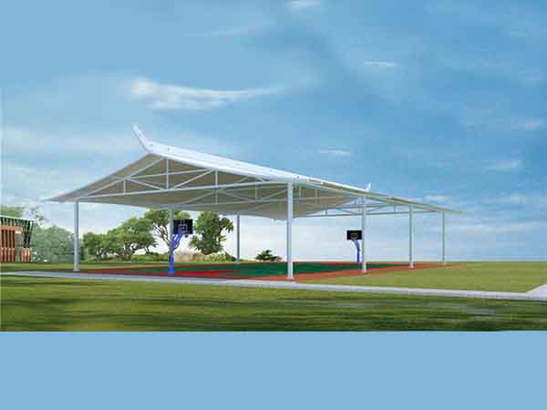 籃球場(chǎng)膜結構罩棚是指安裝在籃球場(chǎng)上方的膜結構,起到遮陽(yáng)擋雨的作用。對于場(chǎng)地要求低,基本上所有籃球場(chǎng)地都可以做膜結構頂棚,相比混凝土結構的風(fēng)雨球館,施工周期更短,造價(jià)更低。膜的透光性比較好,所以可以保證場(chǎng)館內的采光。先設計,然后進(jìn)行材料加工,現場(chǎng)安裝,施工效率更高。下面介紹一下我們在日喀則市周邊縣市完工的一些籃球場(chǎng)膜結構罩棚設計施工案例。