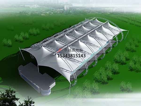 2、膜結構是目前發(fā)展很快的一種新型空間結構,是一種效率極高的張力集成體系,可以充分發(fā)揮鋼索的強度與張拉整體結構的空間作用。它通過(guò)鋼骨架、鋼索與膜材共同受力形式穩定曲面來(lái)覆蓋建筑空間,具有高度的形體可塑性和結構靈活性,即通過(guò)對膜材內部施加一定的預張力,使其具備了抵抗外荷載能力,從而充當結構材料的一種結構體系。我公司先后在七臺河地區承接球場(chǎng)頂棚罩棚設計施工案例,簡(jiǎn)介如下: