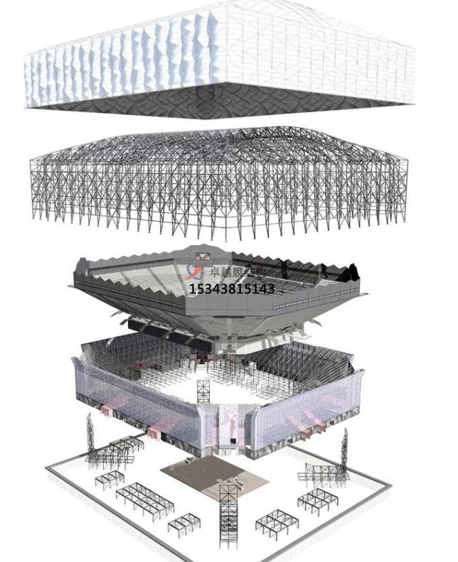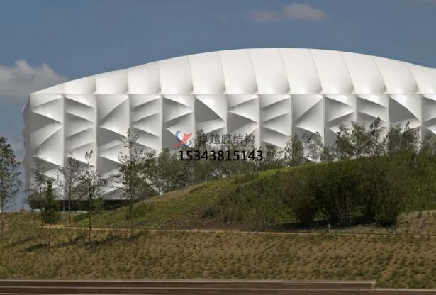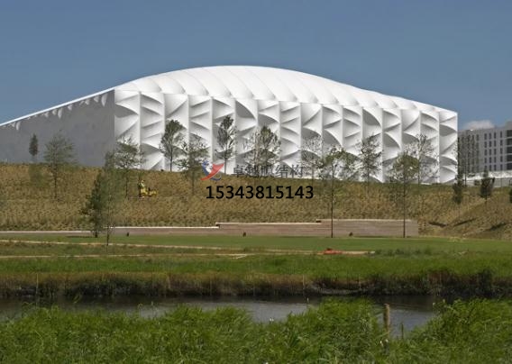 場(chǎng)館高30m,面積兩萬(wàn)平方米,外敷可收回PVC膜,膜在后面的結構的效果下構成美麗的崎嶇。透光的外表皮能夠使得場(chǎng)館在白天能夠十分少的依賴(lài)人工照明。