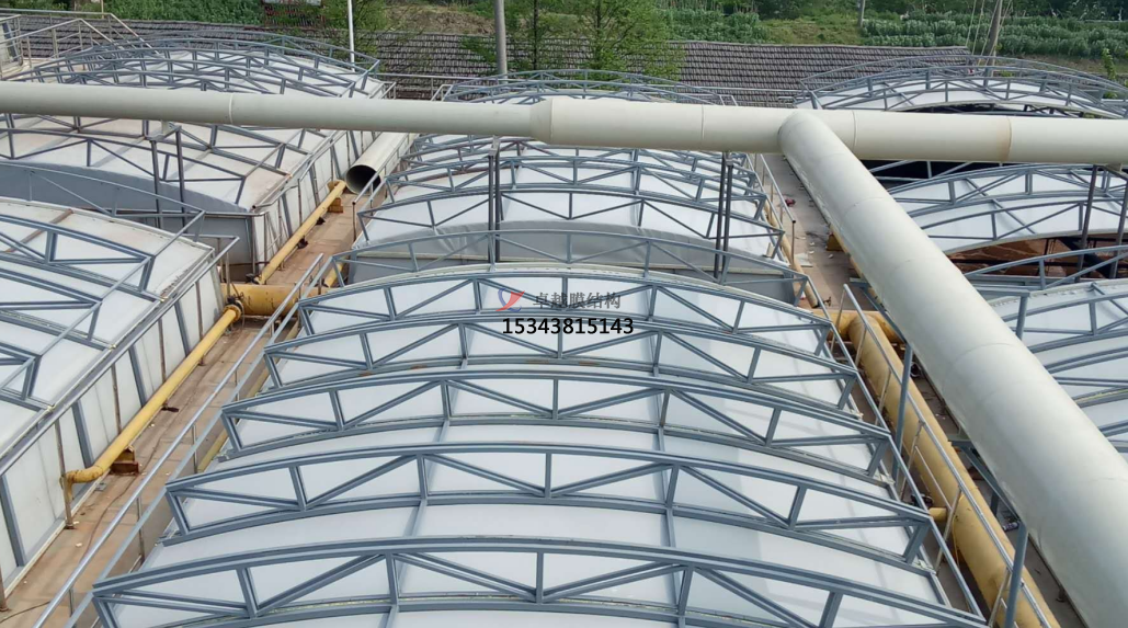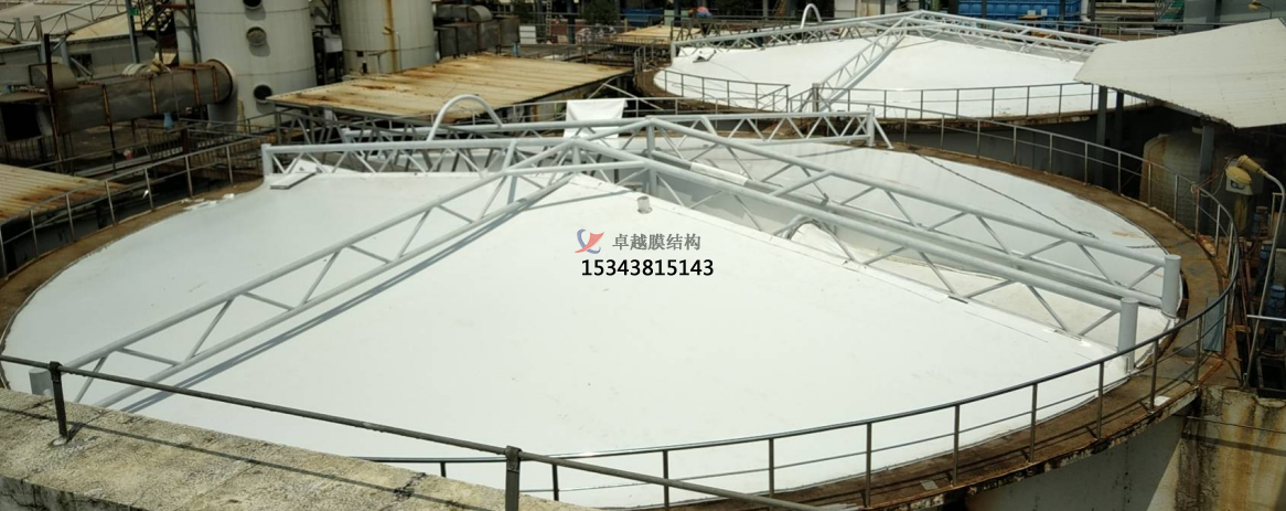 反吊膜用在污水廢氣治理上效果明顯.膜材占了很大的優(yōu)勢。目前市面上許多的反吊膜工程都是采用PVDF膜材.當然能用在膜結構上的膜材不止這一種,還有ETFE膜材、PTFE膜材等,但相對來(lái)說(shuō)PVDF膜材是較為適合做反吊膜的,原因在于: