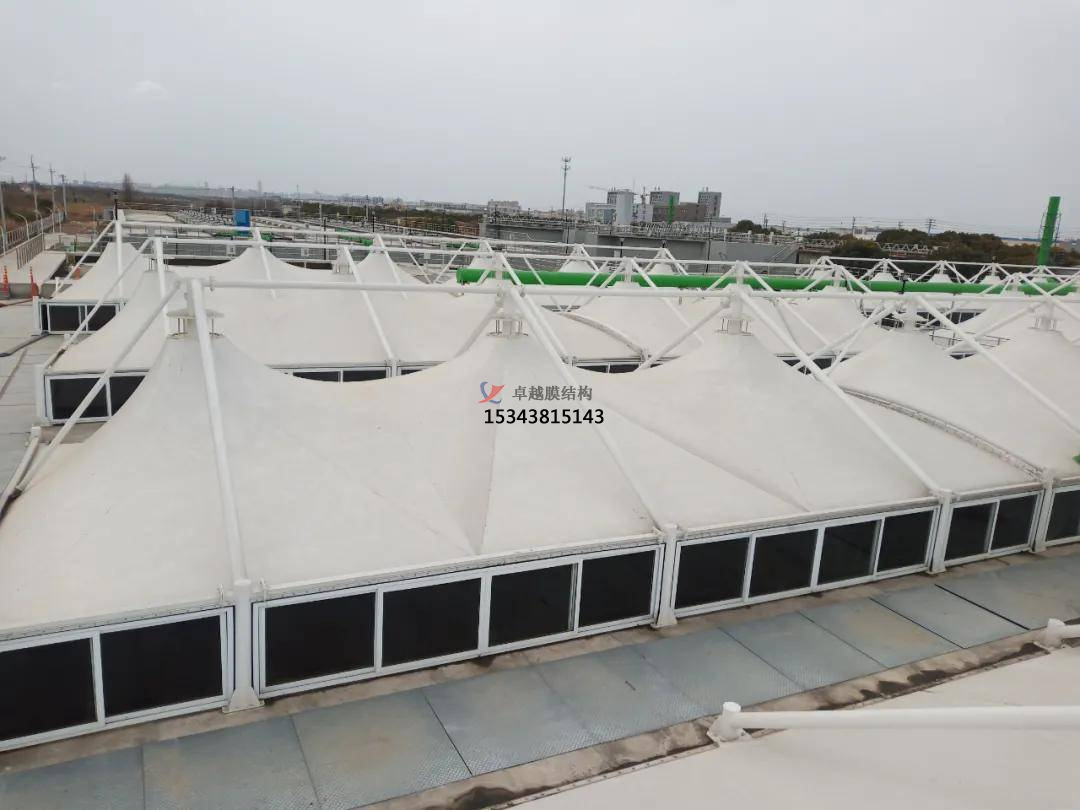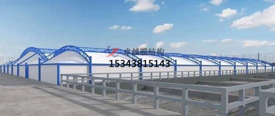在運輸污水池膜材時(shí),盡量將蓋板分成小塊搬運。這樣不僅時(shí)利于拆卸及人工的搬運.同時(shí)也省去了調用大型設備的成本。在各個(gè)膜材板運輸到位后,在進(jìn)行拼接安裝時(shí).各個(gè)小塊膜材之間、膜材和水池頂面之間需要密封連接,這樣可以有效防止臭氣泄漏。在我們拼接安裝完成之后,可以先用水或是空氣來(lái)代替臭氣進(jìn)行調試.檢測其安裝結果是否達到了密封性效果,檢查蓋板有無(wú)滴、漏、冒等現象。在進(jìn)行著(zhù)一系列檢驗工作完成之后.才能正常使用。