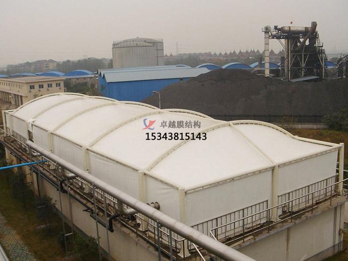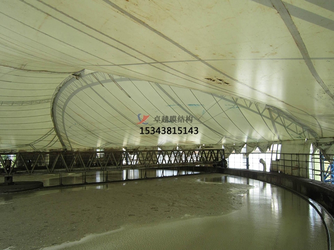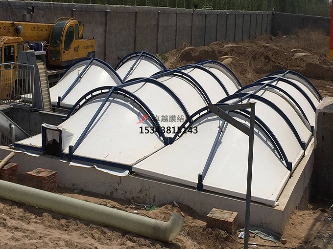膜加蓋的廢氣搜集方法,不只能從根本大將廢氣合格排放,并且通過(guò)膜材的運用,不只能夠延長(cháng)鋼構的運用壽命,并且造型美觀(guān),結構新穎,除臭率高,是一切傳統污水池加蓋不能比的。