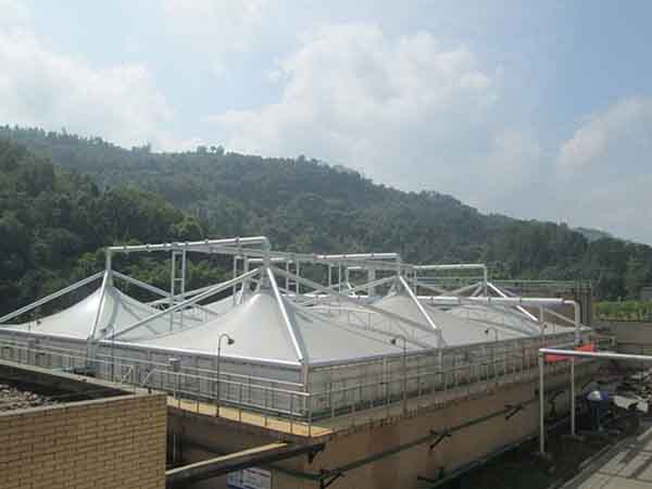 自潔型膜材料通常用于污水池的覆蓋結構,以降低維護和清潔的需求。自潔型膜材料具有抗污染和抗污垢的特性,能夠減少雜質(zhì)的附著(zhù),同時(shí)保持透明度和性能。以下是一些關(guān)于如何使膜結構污水池的膜材料具有自潔特性的方法: