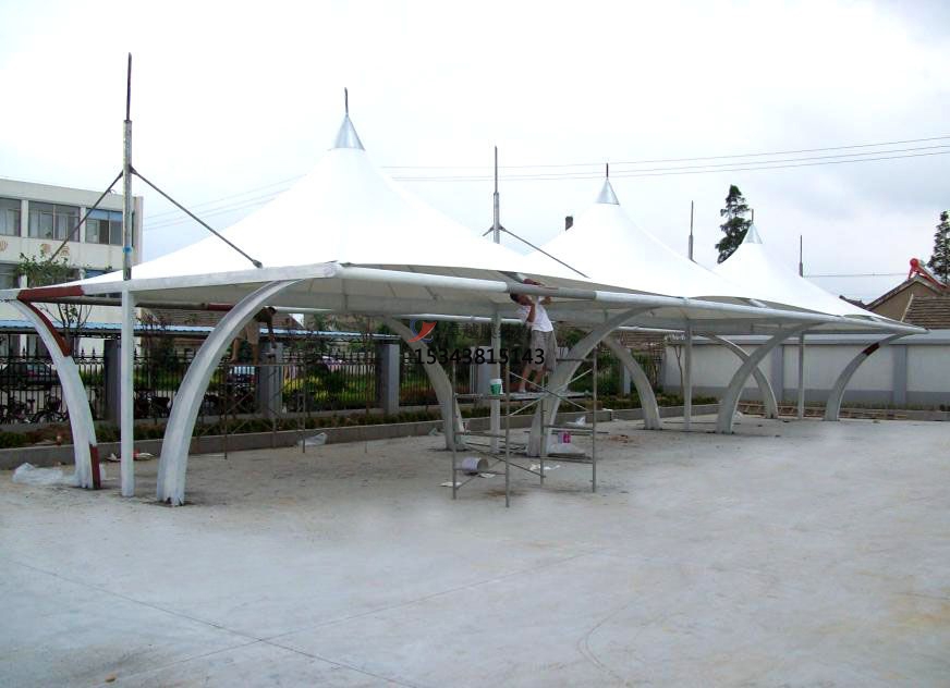 膜結構雨棚是一種全新的建筑結構形式,它集建筑學(xué)、結構力學(xué)、精細化工與材料科學(xué)、計算機技術(shù)等為一體,具有很高技術(shù)含量。其曲面可以隨著(zhù)建筑師的設計需要任意變化,結合整體環(huán)境,建造出標志性的形象工程。