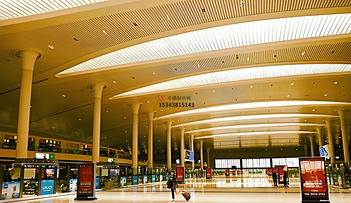 高鐵站選用膜結構,在修建造型上,突破了傳統修建的束縛,可以完結雙曲面、懸挑等雜亂形狀,塑造出極具標志性的修建外觀(guān),為城市增加獨特的風(fēng)景線(xiàn)。在功能方面,良好的透光性減少了人工照明的使用,下降能耗;膜材的耐久性下降了后期維護本錢(qián);自潔性讓高鐵站始終保持整潔漂亮。在施工過(guò)程中,膜結構前期膜材的裁剪、焊接等作業(yè)可在工廠(chǎng)內完結,大幅減少現場(chǎng)施工時(shí)刻,避免施工交叉,縮短整體工期 。