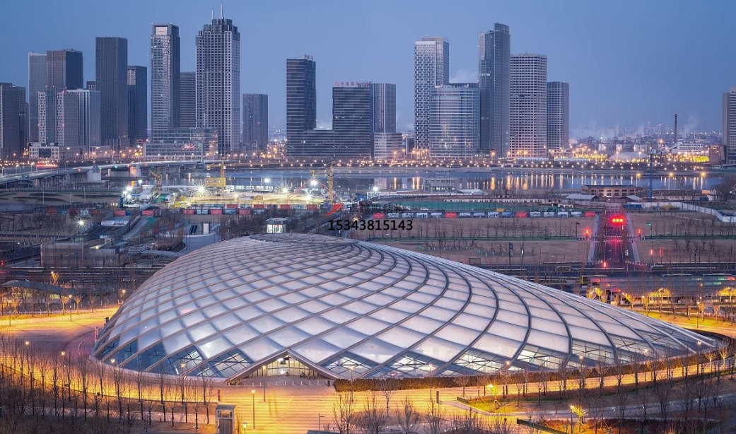 宜賓高鐵站在渝昆高鐵宜賓站站前交通樞紐基礎設施及歸納配套建設項目中,利用 etfe 膜結構天幕雨棚連接車(chē)站、商業(yè)歸納體和城市綠芯公園等主要功能區域。整個(gè)天幕及天橋以鋼結構為基礎,天幕框架結構選用鋼結構或鋁合金作為承重結構,頂部掩蓋 etfe 資料和光伏玻璃,并調配流動(dòng)燈光效果,完美展現竹和流水的規劃理念。該項目鋼結構總用鋼量約 1.2 萬(wàn)噸,屋面選用 etfe 通明資料,在確保規劃效果簡(jiǎn)練與形狀優(yōu)美的一起,也為過(guò)往行人營(yíng)建出天然舒適的開(kāi)放空間 。