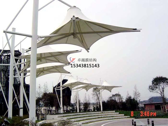 膜結構不僅擁有美觀(guān)的造型,同時(shí)也具備形式不同的功能性,它可以是遮陽(yáng)棚、雨棚、亭子、連廊、光景臺等等。