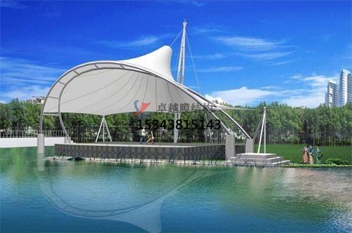 張拉膜景觀(guān)是20世紀中期發(fā)展起來(lái)的一種新型建筑結構形式,是由多種高強薄膜材料(PVC或Teflon)及加強構件(鋼架、鋼柱或鋼索)通過(guò)一定方式使其內部產(chǎn)生一定的預張應力以形成某種空間形狀,作為覆蓋結構,并能承受一定的外荷載作用的一種空間結構形式。