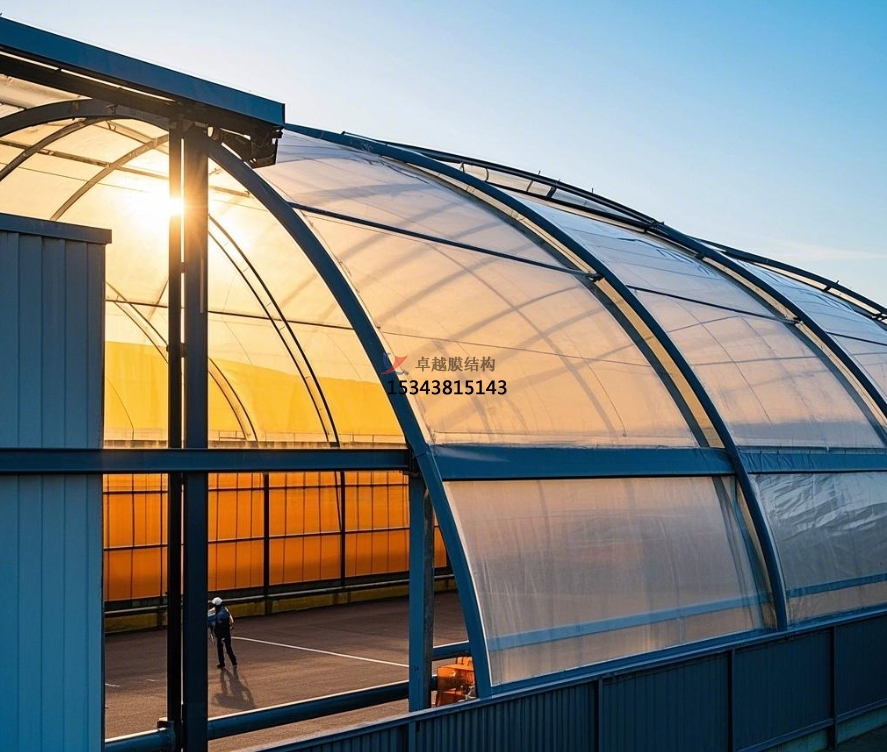 在后期維護上,膜結構罩棚同樣節省費用。膜材具有自潔性,表面不易附著(zhù)灰塵與污漬,雨水沖刷即可保持清潔。并且,膜材耐候性強,耐腐蝕、抗老化,使用壽命可達 15 - 25 年。日常維護只需定期檢查膜材與支撐結構狀況,維護成本大幅降低。據統計,使用膜結構罩棚的垃圾中轉站,每年維護費用可比傳統建筑形式的中轉站節省 30% - 50% 。