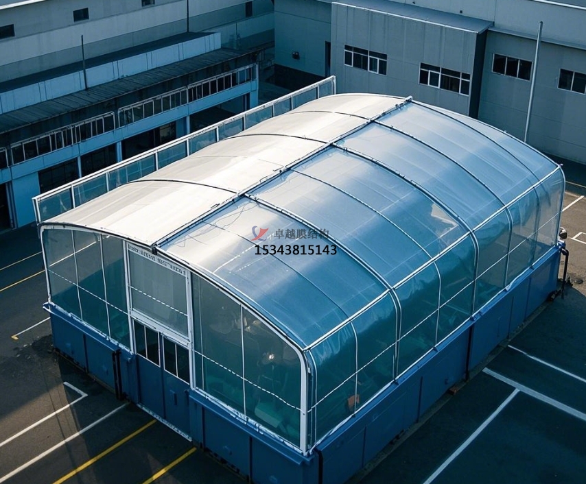 膜結構罩棚主要依靠膜材自身強度及預應力來(lái)承受外部荷載,形成穩定的空間結構。在垃圾中轉站應用中,常見(jiàn)的有骨架式膜結構和充氣式膜結構。