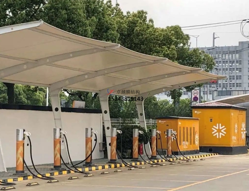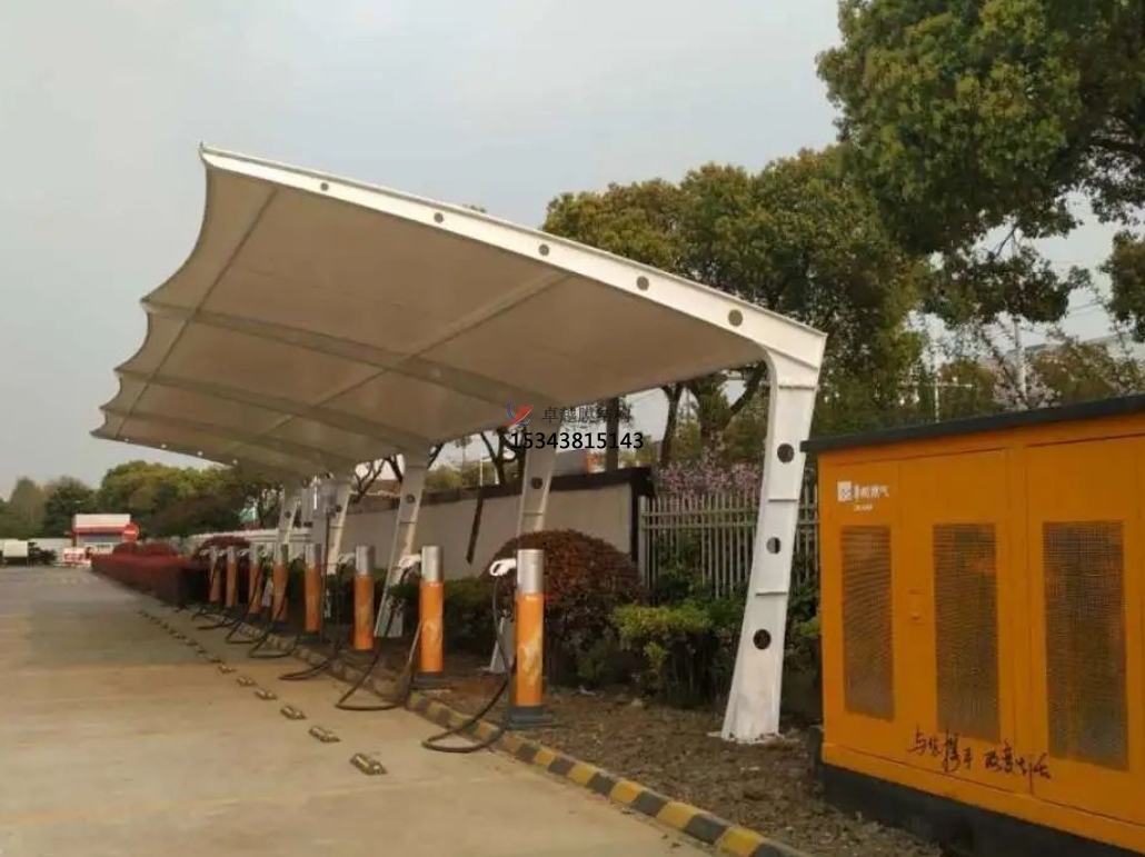 加氣站膜結構雨棚是一種現代化的建筑形式,具有輕質(zhì)高強、美觀(guān)大方、施工快捷、維護方便和節能環(huán)保等特點(diǎn)。其在加氣站中的應用,不僅可以提供寬敞、明亮的加油環(huán)境,還能有效地抵御各種惡劣天氣,提高顧客的舒適度和安全性。