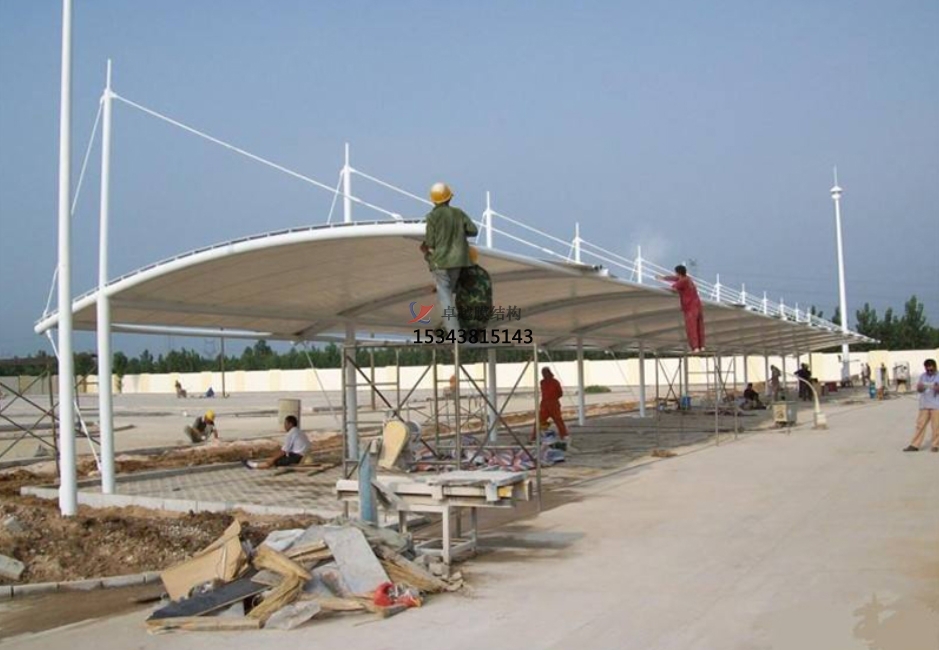 2、另一個(gè)重要的方面當然是親自跟進(jìn)膜結構車(chē)棚的安裝過(guò)程中,看是否有安裝過(guò)程中的損壞,其實(shí)這一點(diǎn)倒不會(huì )有太多的問(wèn)題,因為安裝工都是經(jīng)驗豐富的,也很小心,如果他弄壞了您的膜結構車(chē)棚,他的公司也一定會(huì )做出相應的處理方法。