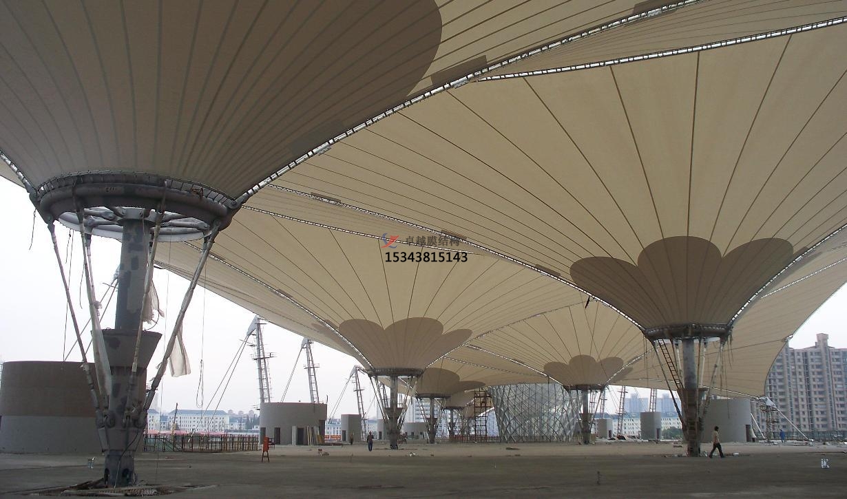 更后是美觀(guān):因為膜結構景觀(guān)膜材料具有透光性,實(shí)際結構中可以清楚地看見(jiàn)焊縫,所以裁剪縫的布置一定要規則、合理,更好能形成一些漂亮的圖案以增加膜結構的美感。如果膜表面設置有壓索或脊索,那么更好使裁剪縫與壓索或脊索重合,使索不至于打亂焊縫的圖案布置。