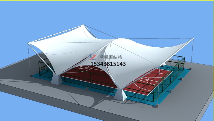 1.骨架式膜結構體育館:此類(lèi)膜結構是固定在精致鋼材、空間桁架或其他堅固的構架上,稱(chēng)之為骨架式膜結構體育館。
