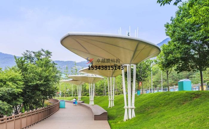 耐久張拉膜景觀(guān):使用壽命10年,中小型運動(dòng)設施,交通設施等,薄膜材料為聚酯纖維PVDF或PVF涂膜。