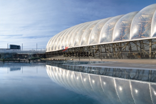 膜結構深化設計的設計原則與核心要求:其設計原則與核心要求要考慮到安全性、經(jīng)濟性、美觀(guān)性、耐久性等幾點(diǎn)。其中安全性方面需綜合考慮風(fēng)荷載、雪荷載、溫度應力等動(dòng)態(tài)荷載對結構穩定性的影響,通過(guò)精確計算確定合理結構形式;經(jīng)濟性需要在滿(mǎn)足功能需求的前提下,優(yōu)化材料用量與施工成本,例如采用參數化建模減少誤差損耗;美觀(guān)性是結合建筑風(fēng)格設計曲面或雙層結構,兼顧遮陽(yáng)、通風(fēng)功能與視覺(jué)藝術(shù)性,如通過(guò)膜材顏色與圖案增強裝飾效果;耐久性需選用高強度、耐腐蝕的膜材(如PVC、PTFE、ETFE),并確保連接件質(zhì)量,延長(cháng)使用壽命。
