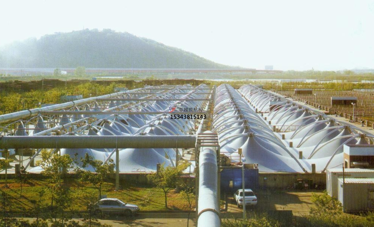 污水池反吊膜,顧名思義,是一種將薄膜材料以反吊的方式覆蓋在污水池上方的結構。這種結構通過(guò)鋼架或索網(wǎng)等支撐體系,將膜材料緊繃并固定于污水池上方,形成一個(gè)密閉或半密閉的空間,有效隔絕污水池內的惡臭氣體和有害物質(zhì),防止其對外擴散,同時(shí)保護膜材料免受污水池內腐蝕性氣體的侵蝕。