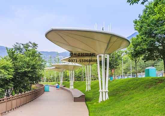 結構形式:管桁架式張拉膜遮陽(yáng)棚