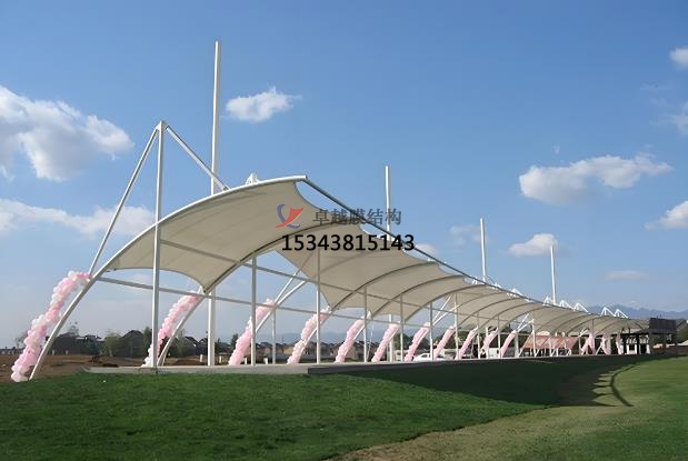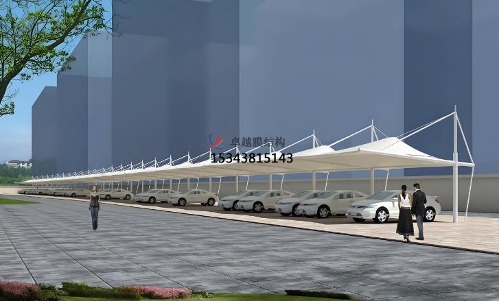 有獨特的藝術(shù)美感,為城市增添亮麗風(fēng)景線(xiàn)。高強度膜材配合張拉技術(shù),使車(chē)棚抵御風(fēng)雨能力強,膜材料還具有高強度、耐候性、防火性和自潔性,有的采用永久性膜材,使用壽命可達25年