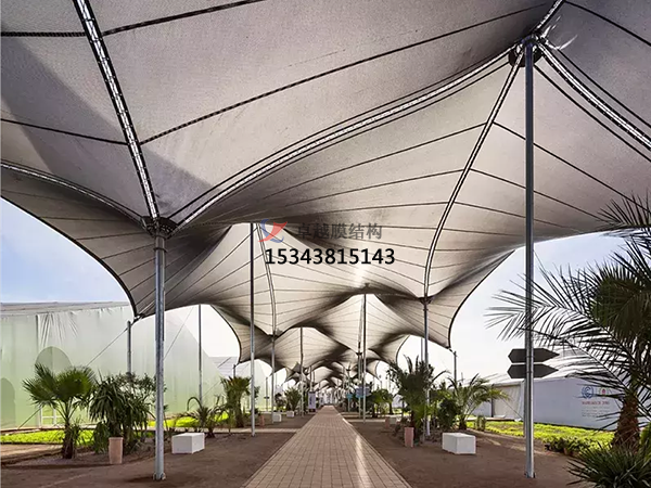 膜結構的輕巧,別致的造型建造各種半封閉,全封閉的不行空間,使其形成全天候的建筑空間,提供防風(fēng)雨,防日曬等人工環(huán)境,并有較好的廣告標識效果,因此是步行街改造和新建的絕佳選擇。