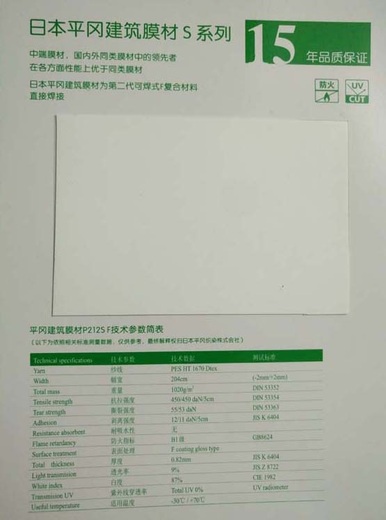 日本平岡建筑膜材中國市場(chǎng)很好的推系列: