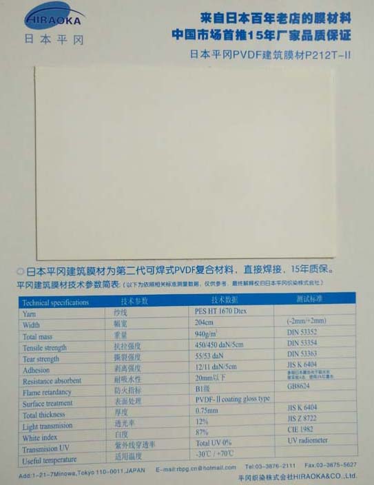 日本平岡建筑膜材,全球高端膜材中的佼佼者,具有超自潔性和超耐久性,15年廠(chǎng)家品質(zhì)保證。